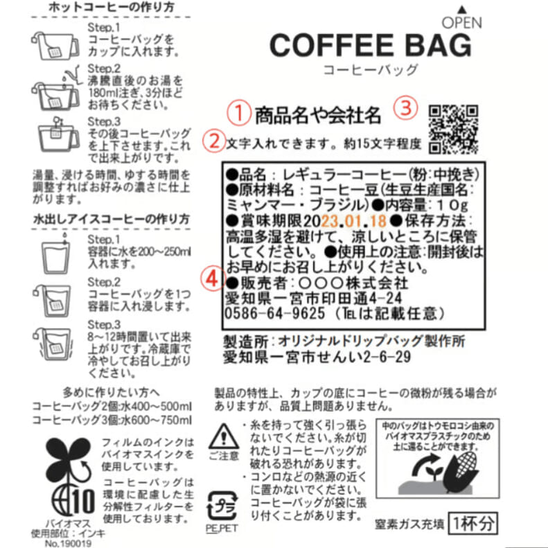 オリジナル印刷も可能なドリップバッグです