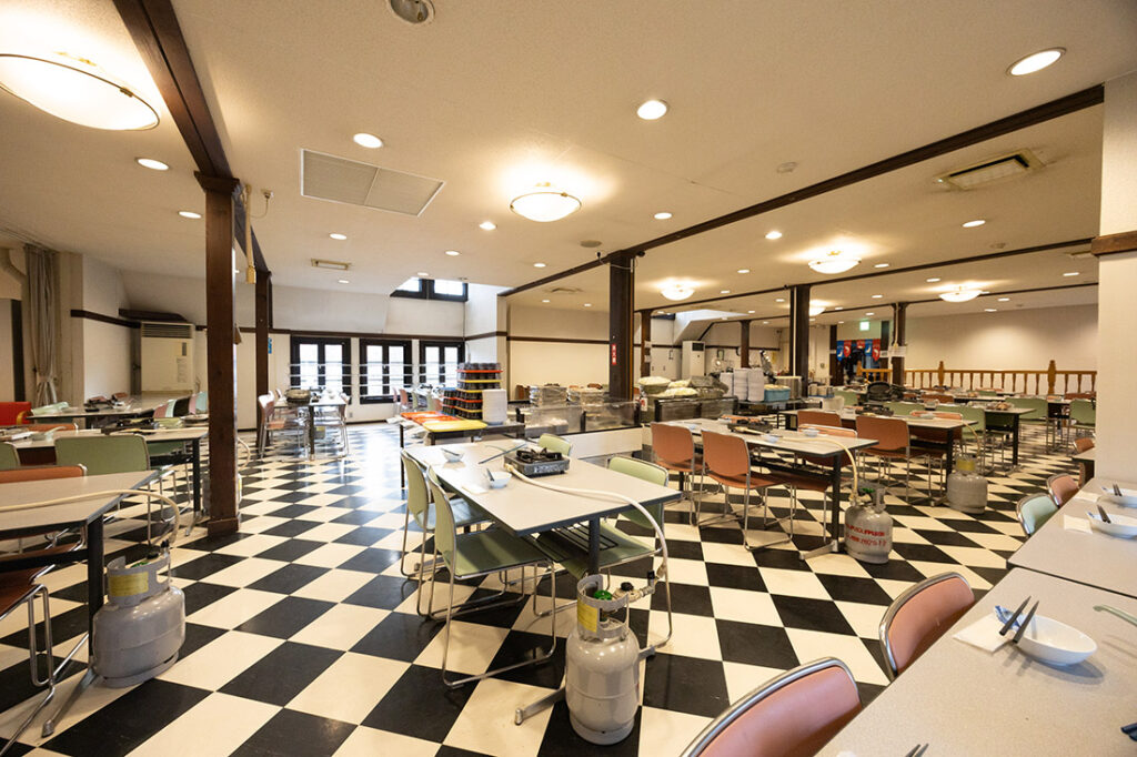園内には団体さま専用のレストランが5か所あります。学校行事専用のカレーバイキングやすき焼き食べ放題、一般団体さま向けの海鮮味噌鍋やヘルシーセツトなど、大人数で気兼ねなくワイワイ楽しむことができます。