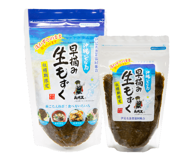 伊是名島産の「早摘み生もずく」や「完熟生もずく」をメインに、海ぶどうやアーサーなど海産物や農畜産物、特産品など沖縄県産食材を全国へお届けしております。